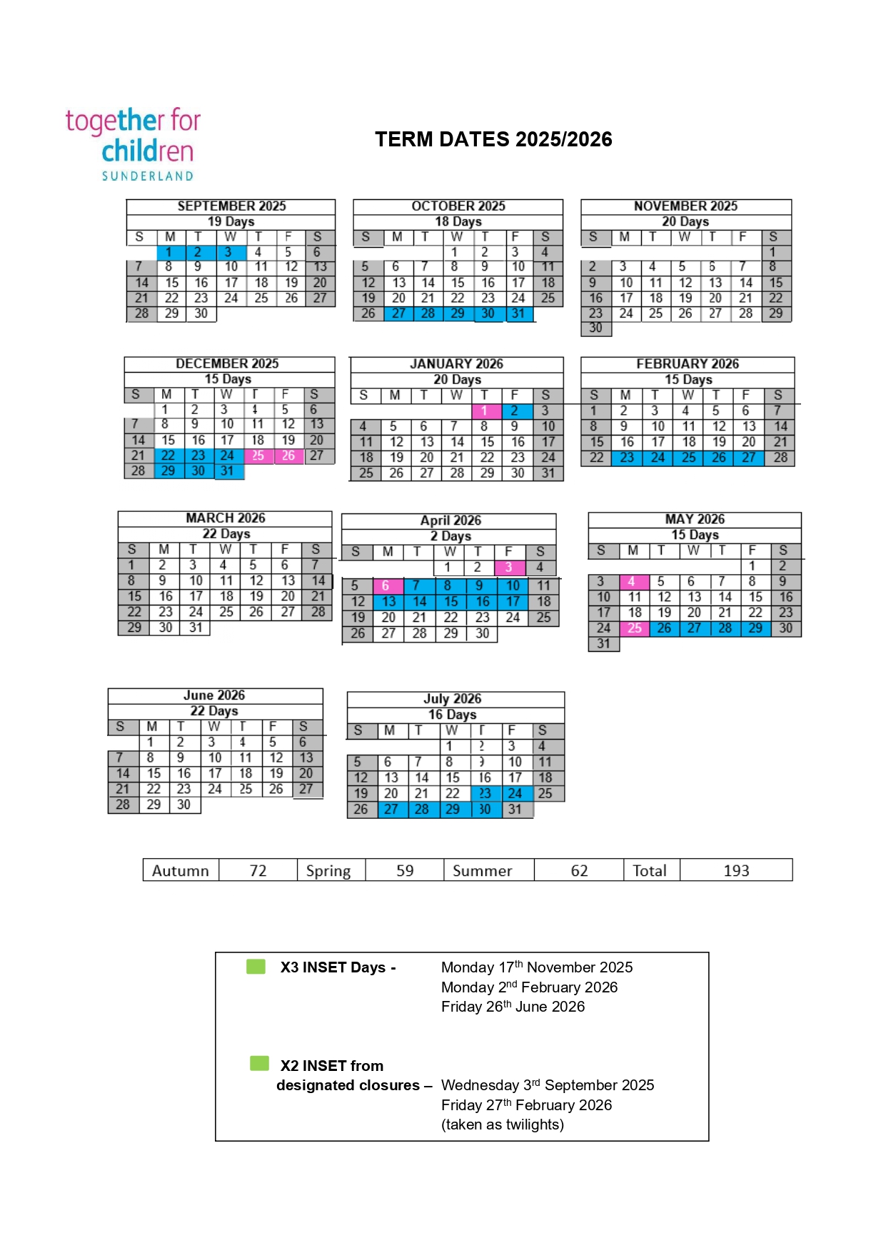 INSET Days – School will be closed to all pupils for staff training.